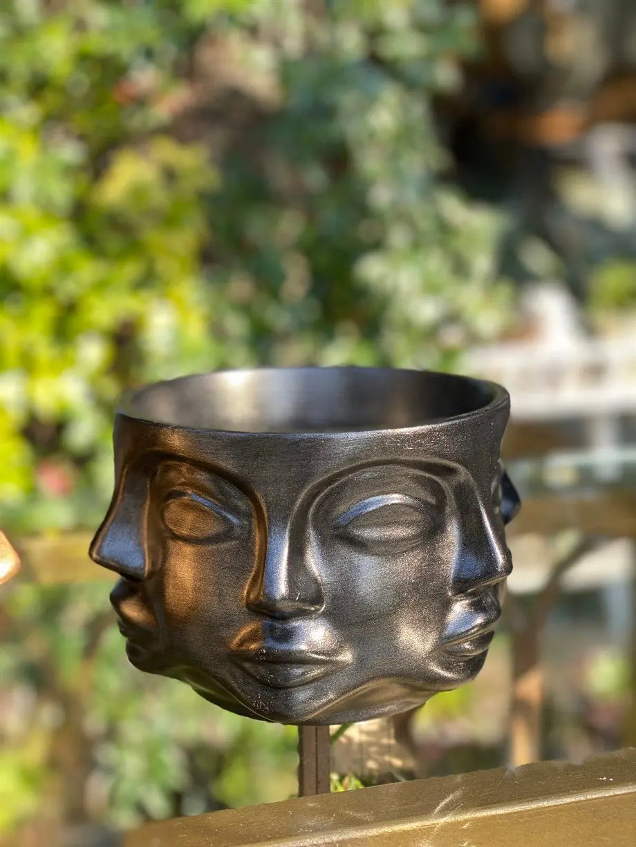 Dekorativer, mittelgroßer Pflanzkübel von Adler in Metallic-Schwarz (17 cm) – Handgefertigtes Designer-Dekor aus Polyester in Metallic-Schwarz