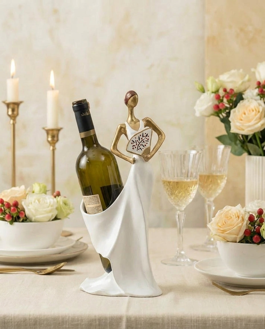 Perla Weinflaschenhalter aus Polyester, handgefertigt, weiß, 35 cm