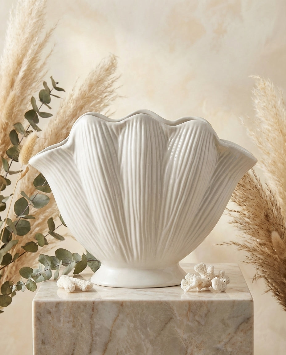 Maris Ceramic Vase – Handmade White Sculptural Designer Decor (26 cm)