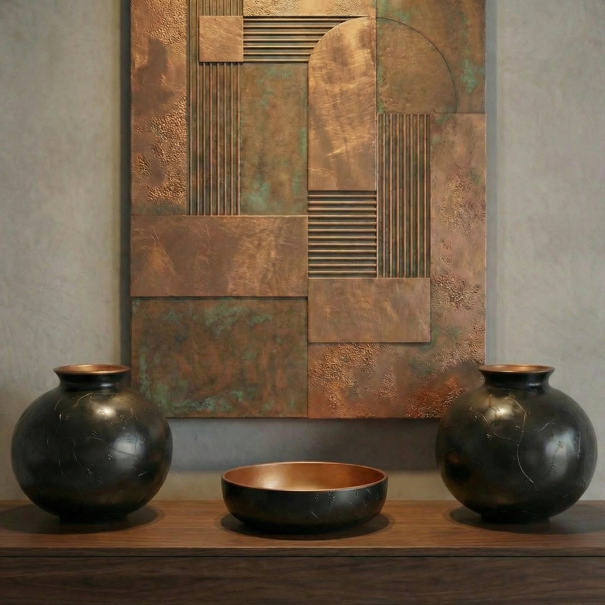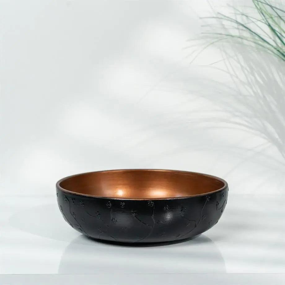 Bakirdan Collectie Keramische Kubusvaas & Schaal Set (3-delig) – Handgemaakt Zwart & Brons Design Decor (20,5 cm)