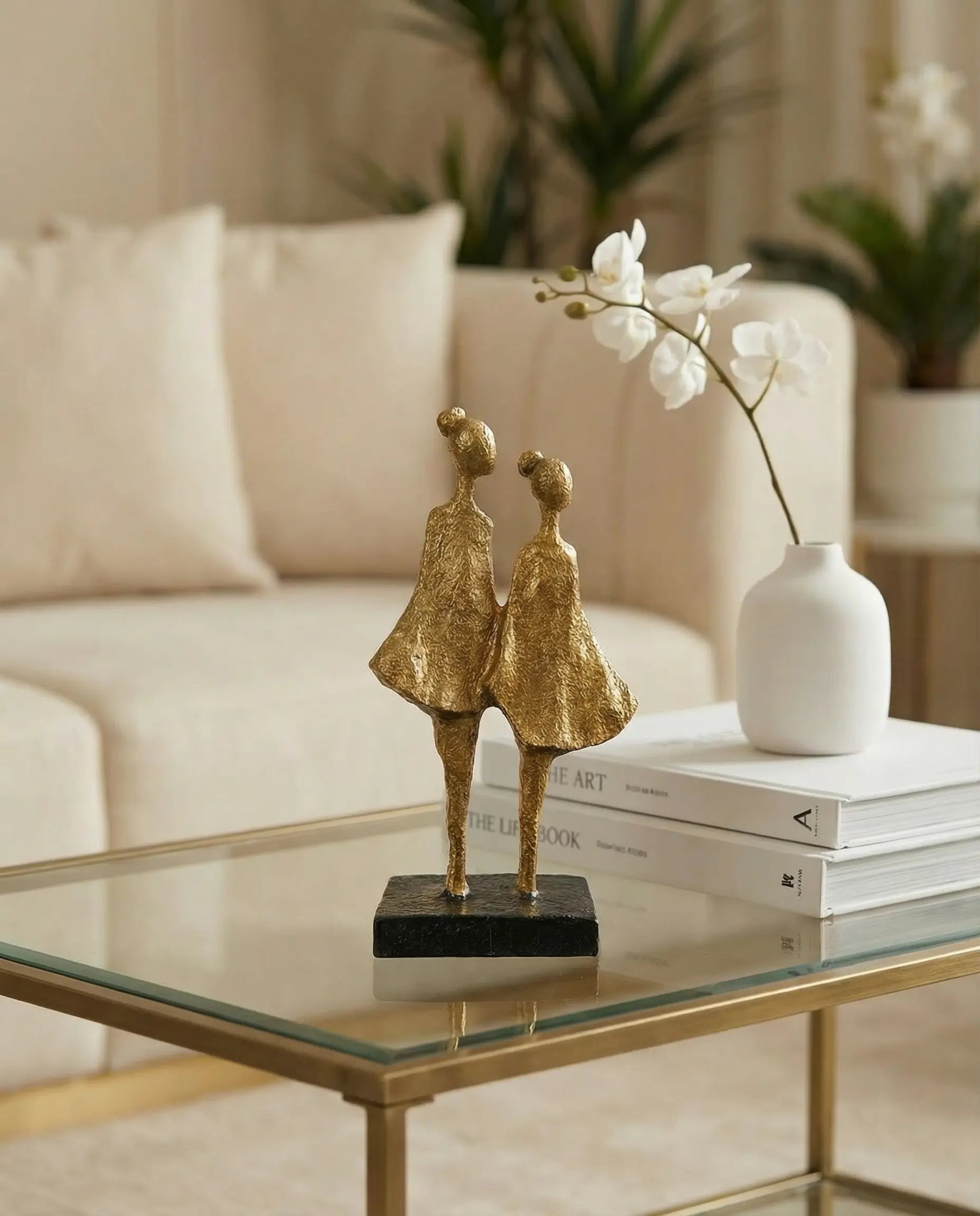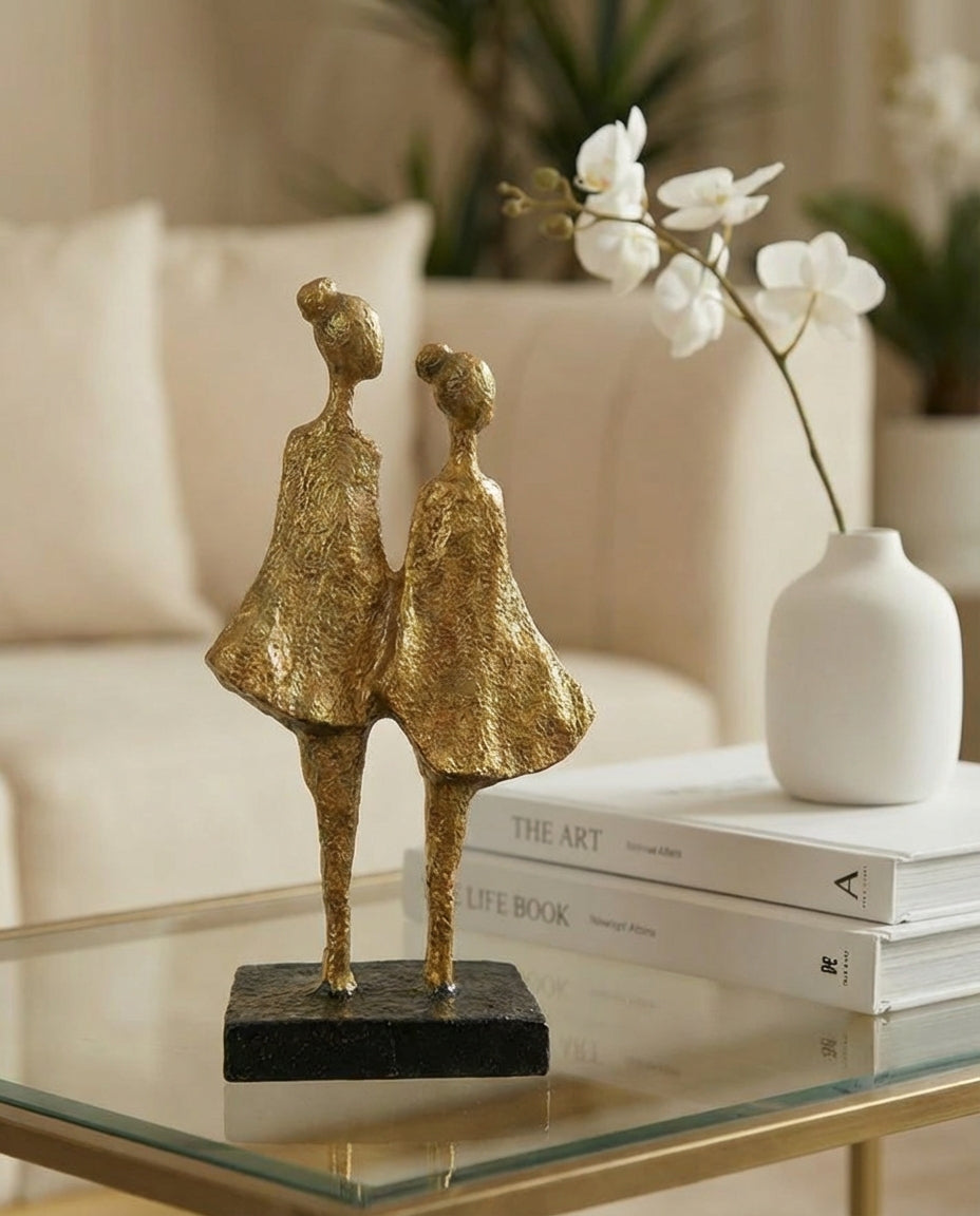 Abstracte figurenset in balans (30 cm) – Handgemaakte zwarte en gouden sculpturale designdecoratie