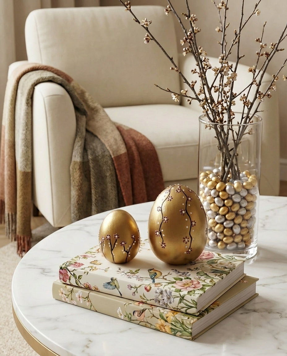 Easter Ceramic Egg Set (2-Piece) (15 cm) – Handmade Gold Designer Spring Decor