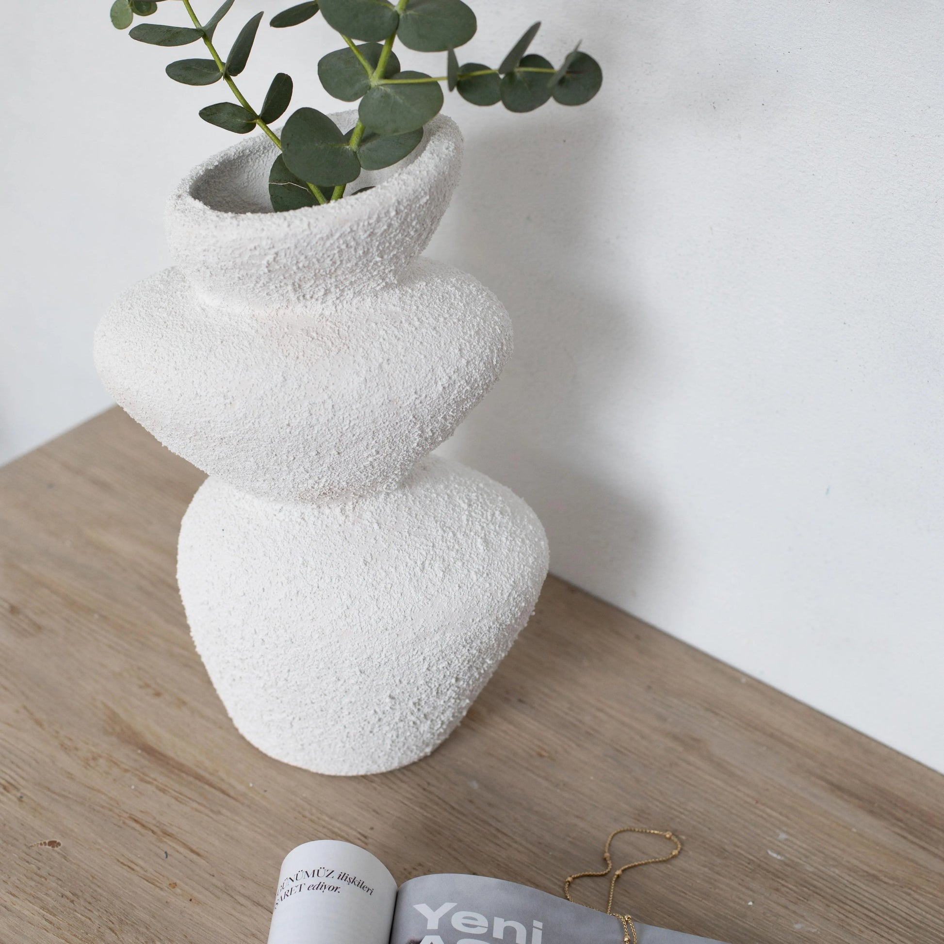 Moderna Collection Stone Textured Ceramic Vase – Handmade White Designer Decor (30 cm)