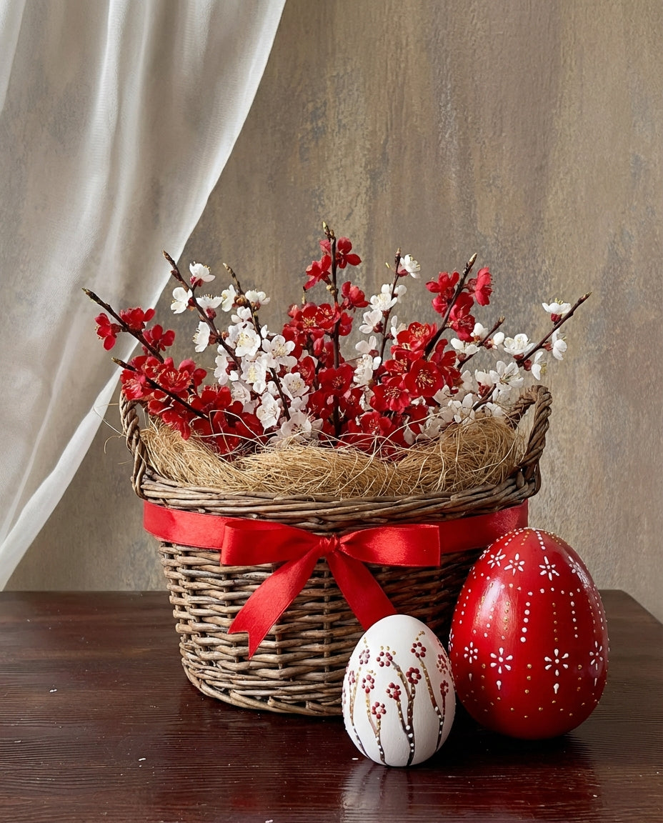 Easter Ceramic Egg Set (2-Piece) (15 cm) – Handmade Red Designer Spring Decor